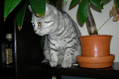 O nás:Tak, jako většina chovatelů i my jsme nezačínali rovnou s kočkami s rodokmenem, ale pomalu jsme se k chovu dostali přes pouliční a domácí Micky a Macíky. Odjakživa se nám kolem domu motalo nějaké mourovaté kotě, které se časem ztratilo nebo si jej nějaký dobrák odnesl domů. Protože jsme to vždy obrečeli, padlo rozhodnutí, že žádný další chlupáč už nebude. Až jednou přišel opravdový krasavec. Tedy, abych byla přesnější, někdo nám ho hodil do okapu. Po složité záchranné akci, jsme žalostně vyhublé koťátko dostali pomocí košíku dolů. Určitě už víte, jak to všechno dopadlo. Kotě tedy kocourka jsme nakrmili, odblešili a pojmenovali. A Vilík nás za to už 14 let miluje. Když přišel čas zařídit si svou domácnost, bylo jasné, že bez kočky být nemůže. Kocour Vilda zůstal u mé maminky a já si vybrala nádhernou stříbrnou britušku. Můj přítel byl tedy ze začátku proti. Jeho zásadní stanovisko; Fuj, smradlavá kočka! Kočka mi nesmí do bytu! bylo zlomeno hned první noc. Kočičí miminko, které jsme z výchovných důvodů nechali na chodbě, hrozně moc plakalo a tak po páníčkovo přímluvě skončilo u nás v posteli. Jak jinak! A od té doby je to přítelovo miláček, kterého mu samozřejmě moc přeju!